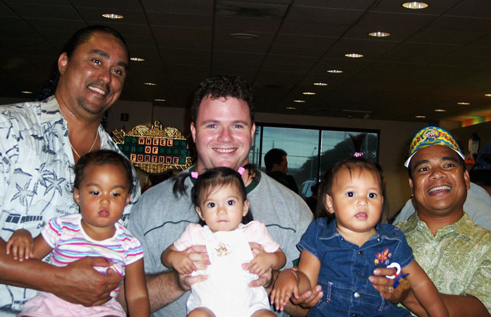 The Daddys had fun with us at Chuck E. Cheese;even though we all three were traumatized by a giant rodent.