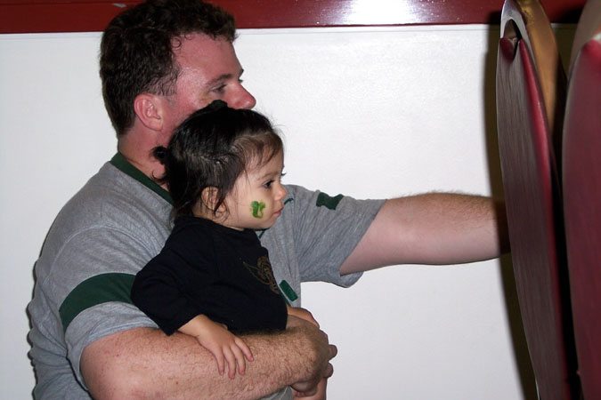 I also enjoyed watching the actual football game with Daddy.After UH returned the kickoff for a TD, it was an unholy slaughter: Hawaii 68, Idaho 10.