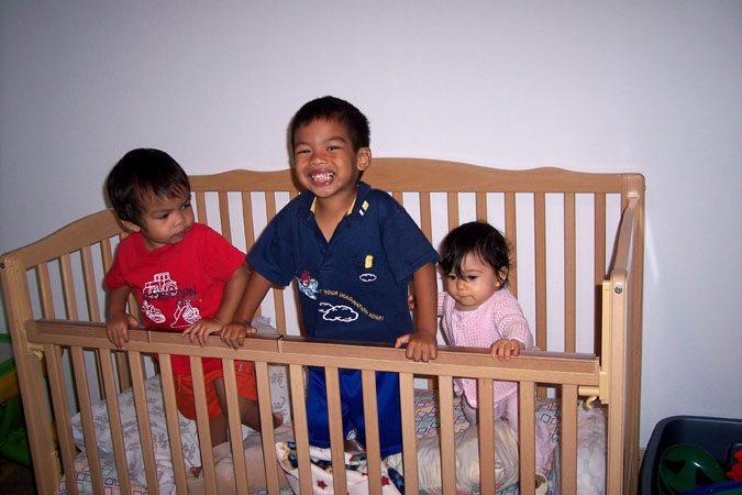 Three little monkeys, jumping in the bed... with Ramsey and Anthony (I'm not that short, I'm kneeling)