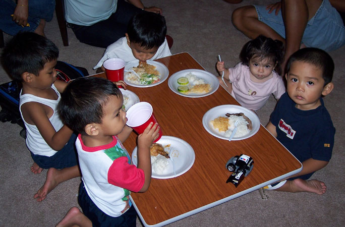 Having pancit with Ramsey, Anthony & Co. at the kids' table.