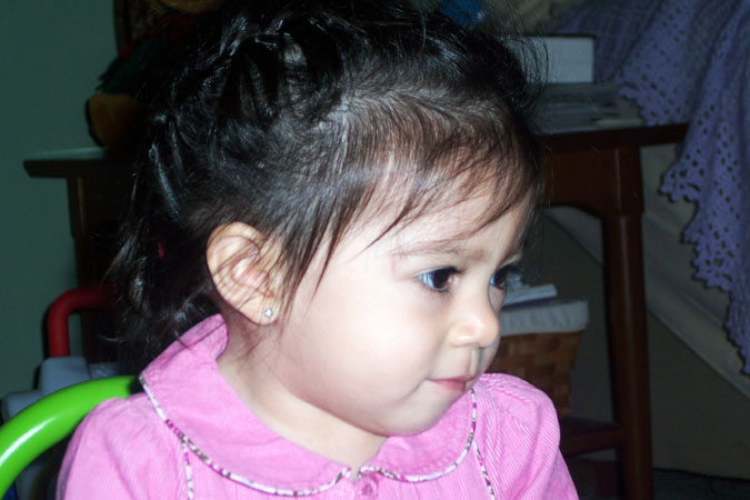 I still haven't gotten my first haircut, we're growing it out.Now my hair can be braided.