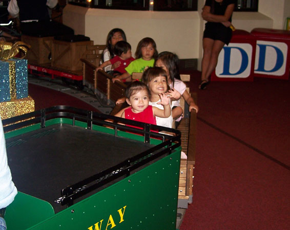 Riding the rails on the Pearlridge Express train at the mall.