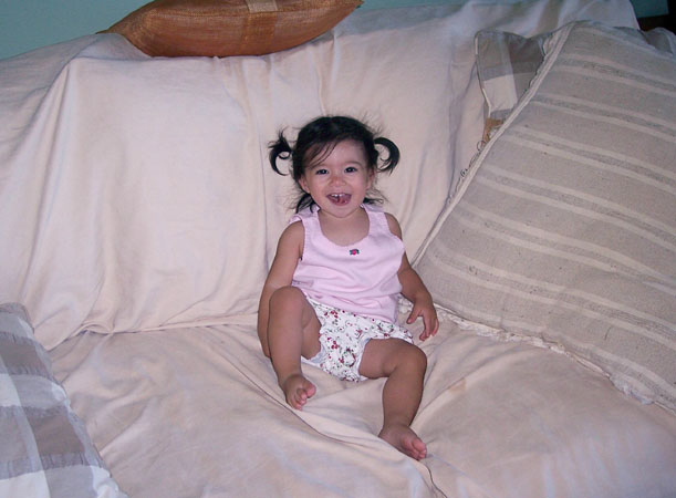 Ha-ha, I'm on the couch like a big girl!Only I'm not a big girl... I'm still Mommy & Daddy's baby