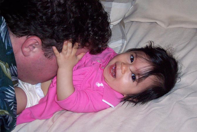 Daddy blowing on my belly button!