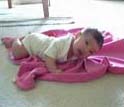 Hi Mommy! September 7, 2005: This time around, I liked tummy time better. I could even be pulled away from Baby Einstein to acknowledge the camera. 1:03 min, 2.4 MB |
