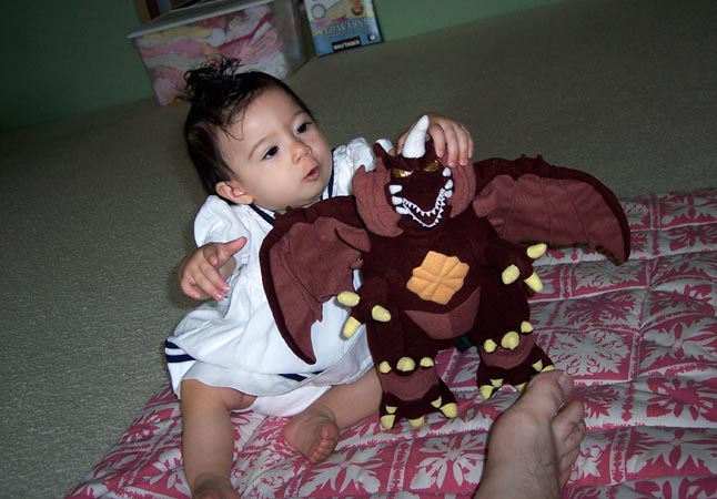 Ooh, I got my own plush Godzilla monster: his enemy Destoroyah!I wonder if Daddy got this so I would leave his toys alone?